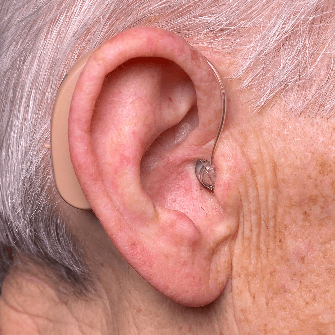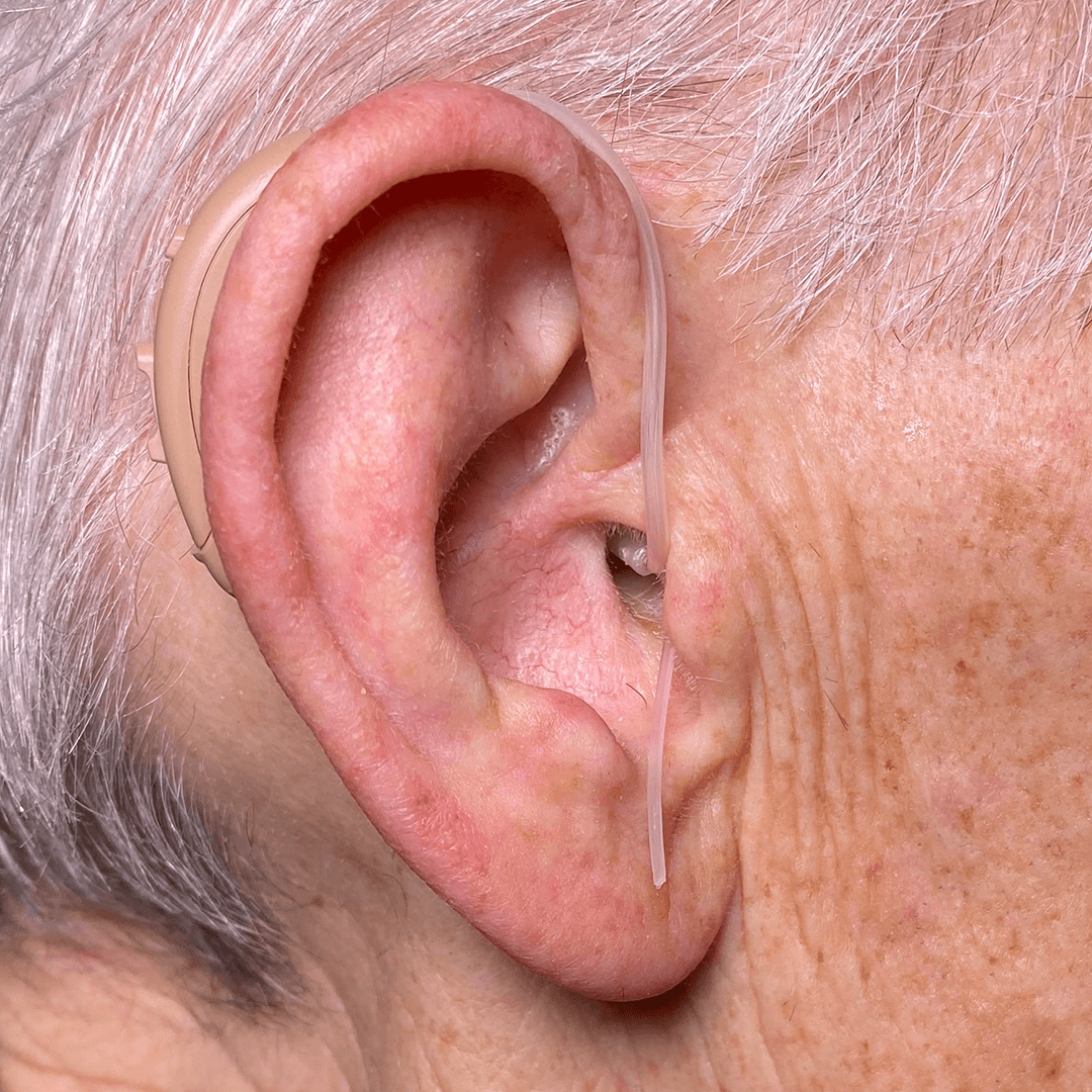 BTE hearing aids fit behind your ears, offering ease of adjustment and use. They are slightly larger than CIC or ITE models but provide excellent sound quality.