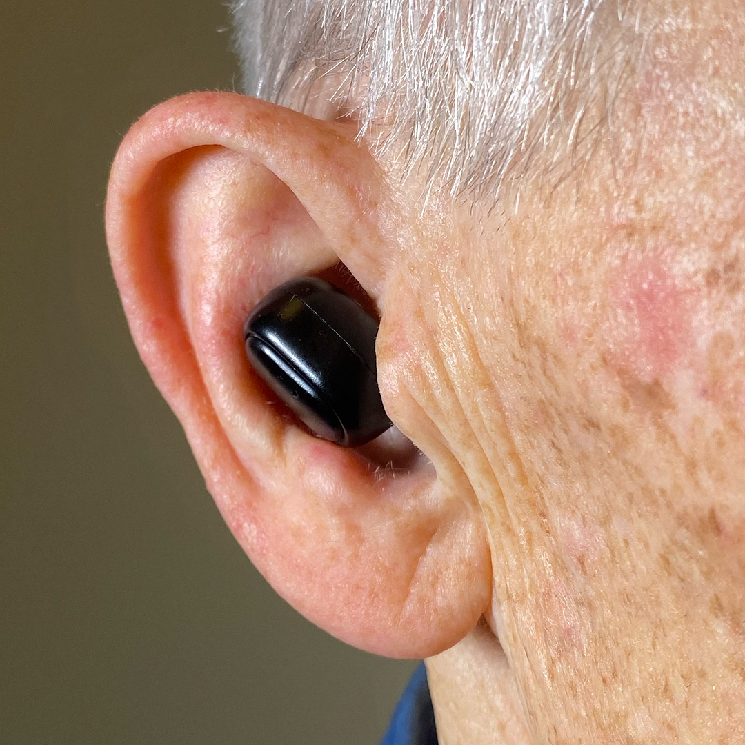 ITE hearing aids fit directly into your ear canals, with the body resting just outside the ear. While slightly more visible than CIC aids, they still offer discretion with a design resembling earbuds.
